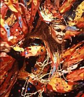 Carnival in the New World is a synthesis of European elements — Christian traditions and the masquerade — and African elements — primarily music and dance. In Trinidad, Carnival is a colorful, exuberant celebration of national focus and pride. Preparations are made throughout the year and reach a frantic pace just before Carnival begins.
